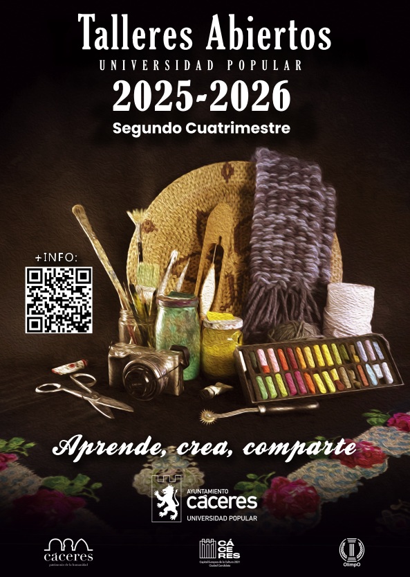 La Universidad Popular del Excmo. Ayuntamiento de Cáceres lanza la 2.ª convocatoria del Programa “Talleres Abiertos” 2025–2026, correspondiente al segundo cuatrimestre (marzo–junio 2026), con una oferta pensada para el desarrollo personal, social y cultural, en distintas áreas temáticas.